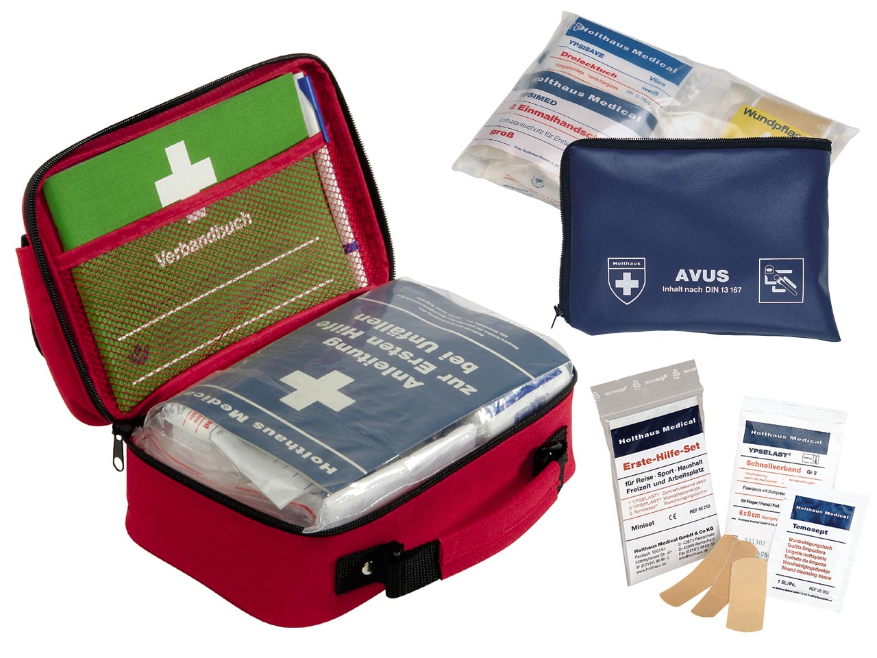 Die zur Ersten Hilfe erforderlichen Mittel müssen an Arbeitsplätzen vorhanden sein. Man wählt zwischen Verbandkästen oder anderen Behältnissen, die den Anforderungen entsprechen, z.B. Verbandschränke oder -koffer.